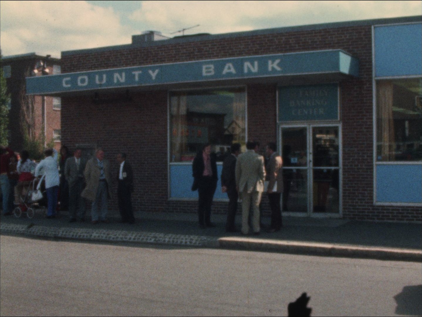 Description: Leader: P2 Event #10 - Everett Bank Holdup #10008 9/23/74; Interview with James Newpher, head of the Boston office of the FBI, about a bank robbery in Everett. Silent footage of the FBI office, County Bank building, close up shots of bullet holes and broken windows, and investigators outside the bank. Interview with a witness to the robbery and the shoot out between the bank robbers and the police. More of the interview with Newpher.