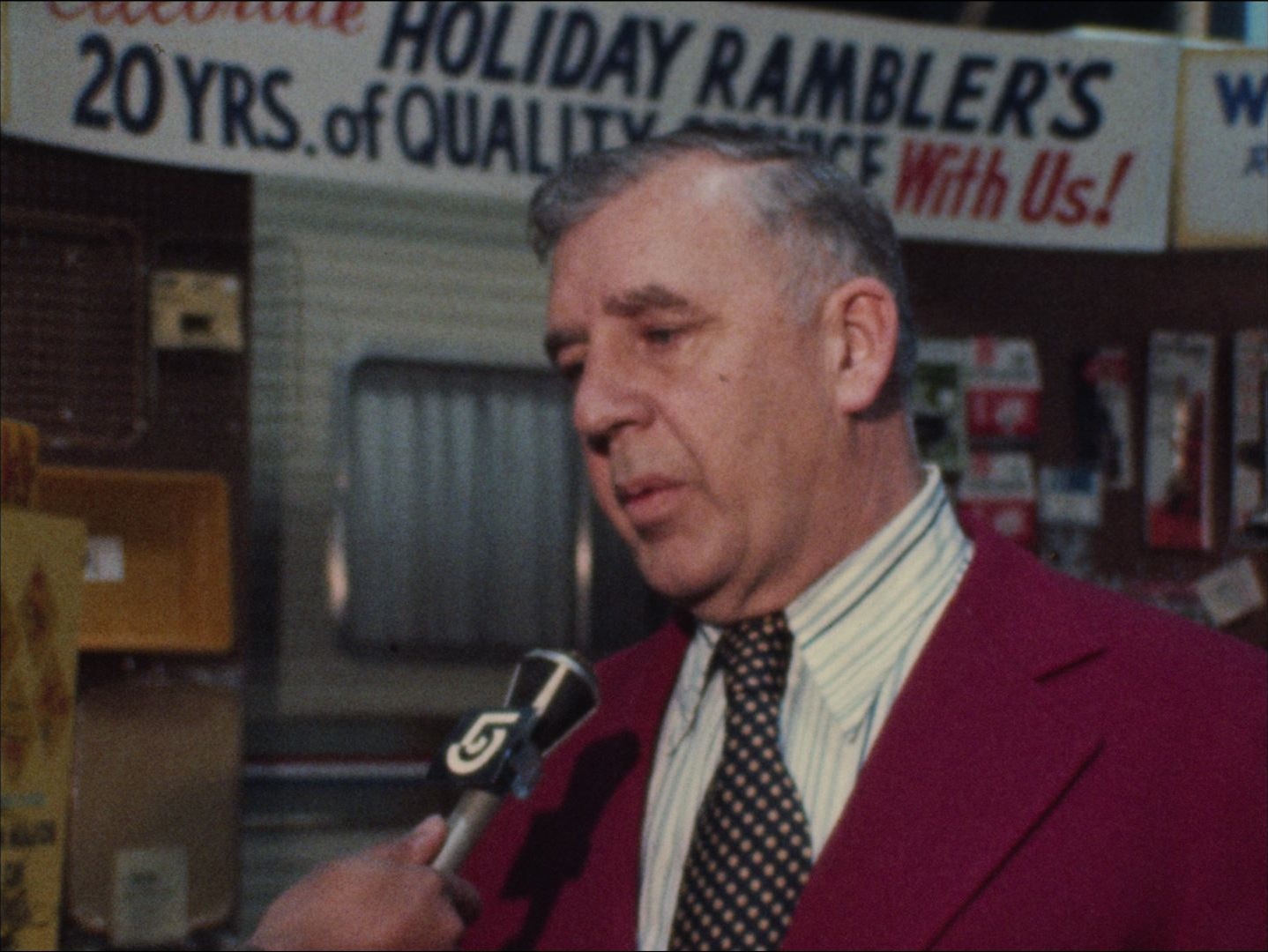 Description: Leader: P1 Camping and Trailer Show #7000 1/12/74; New England Camping and Trailer Show at the Commonwealth Pier Exhibition Hall in Boston. Interview with a man (possibly show director Frank Chicko) about the energy crisis. Jim Boyd reporter standup about how exhibitors at the Camping and Trailer Show are talking about the energy crisis. Silent footage of exhibits and signs at the show. Interviews with one of the exhibitors and several customers about how the energy crisis will affect their camping plans for the summer.