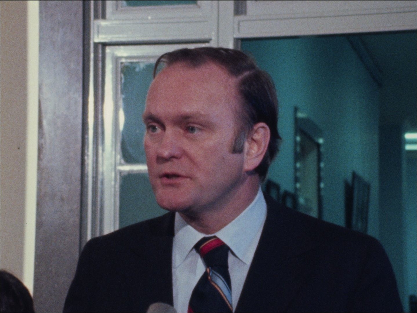 Leader: P1 Quinn - Wholesalers #7332 2/15/74; Silent b-roll of a meeting with Massachusetts Attorney General Robert Quinn and representatives from nine gasoline wholesalers about the causes of the fuel shortage. After the meeting Quinn and one of the representatives make statements to the press.