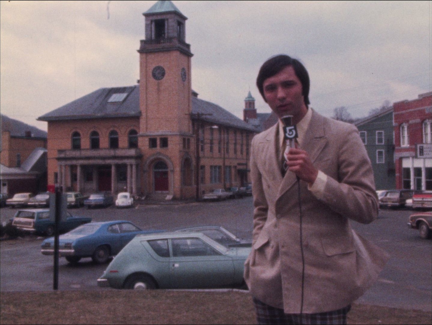Description: "Leader: "P1 Warren Plan 3/1/74 #7463"; Shot of Warren Railroad station with Mike Taibbi voiceover about a plan to buy up property in the Warren township and make a new town called Carrabetta City. Sound bite from Milton Fountain, local realtor. Interview with a woman (Mrs. Wright) on the street about the plan, silent b-roll of a meeting, shots of Warren. Town official discusses an upcoming vote that could derail the project. More interview with Mrs. Wright about opposition to the plan. Reporter outtakes."