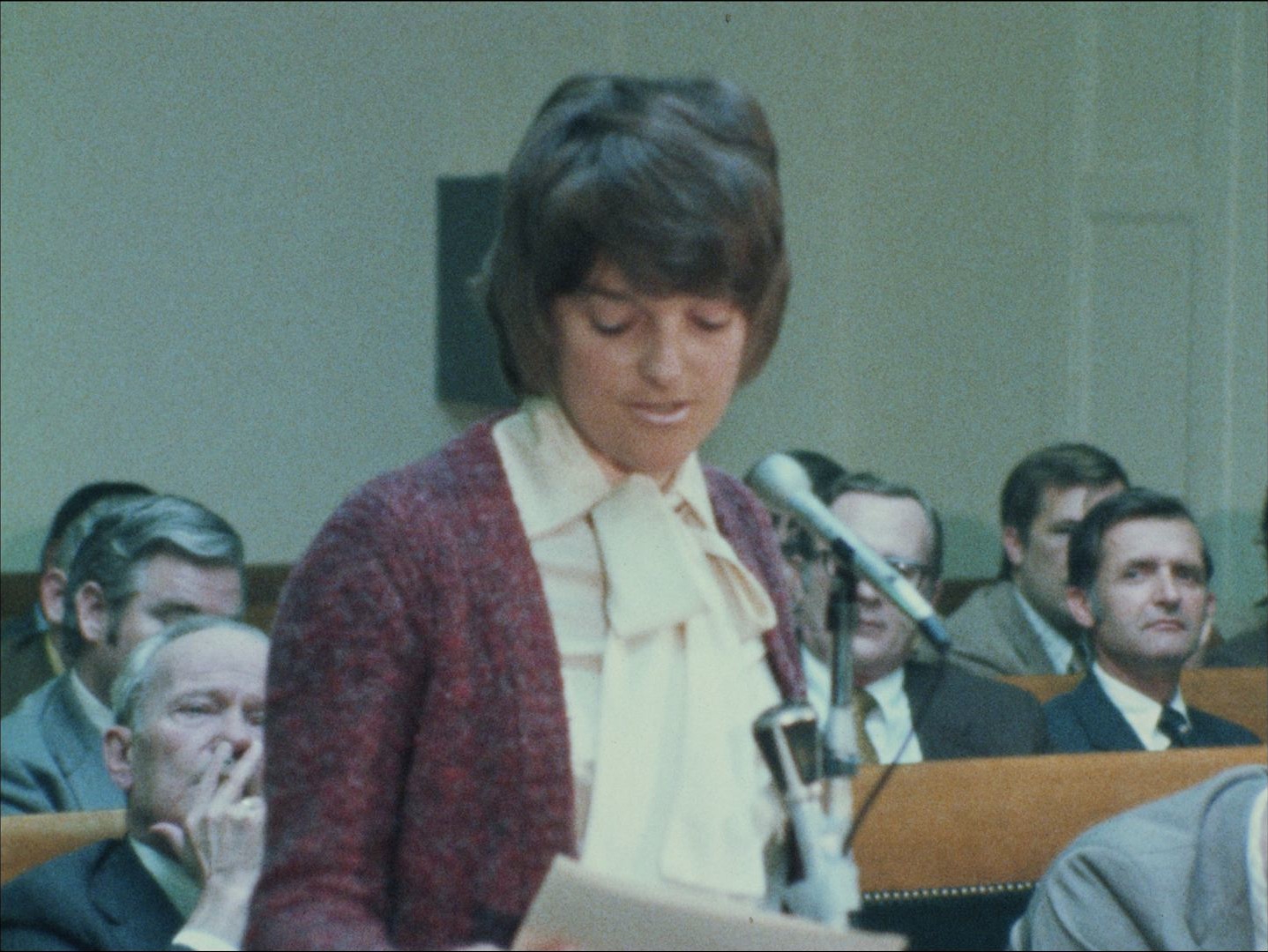 Leader: F1 Credit Card Hearing #7708 3/26/74; A hearing with public comment about a proposed Massachusetts House bill regarding credit reports and credit cards. Men and women testify to the committee about the bill, followed by silent b-roll of the hearing, and more testimony.