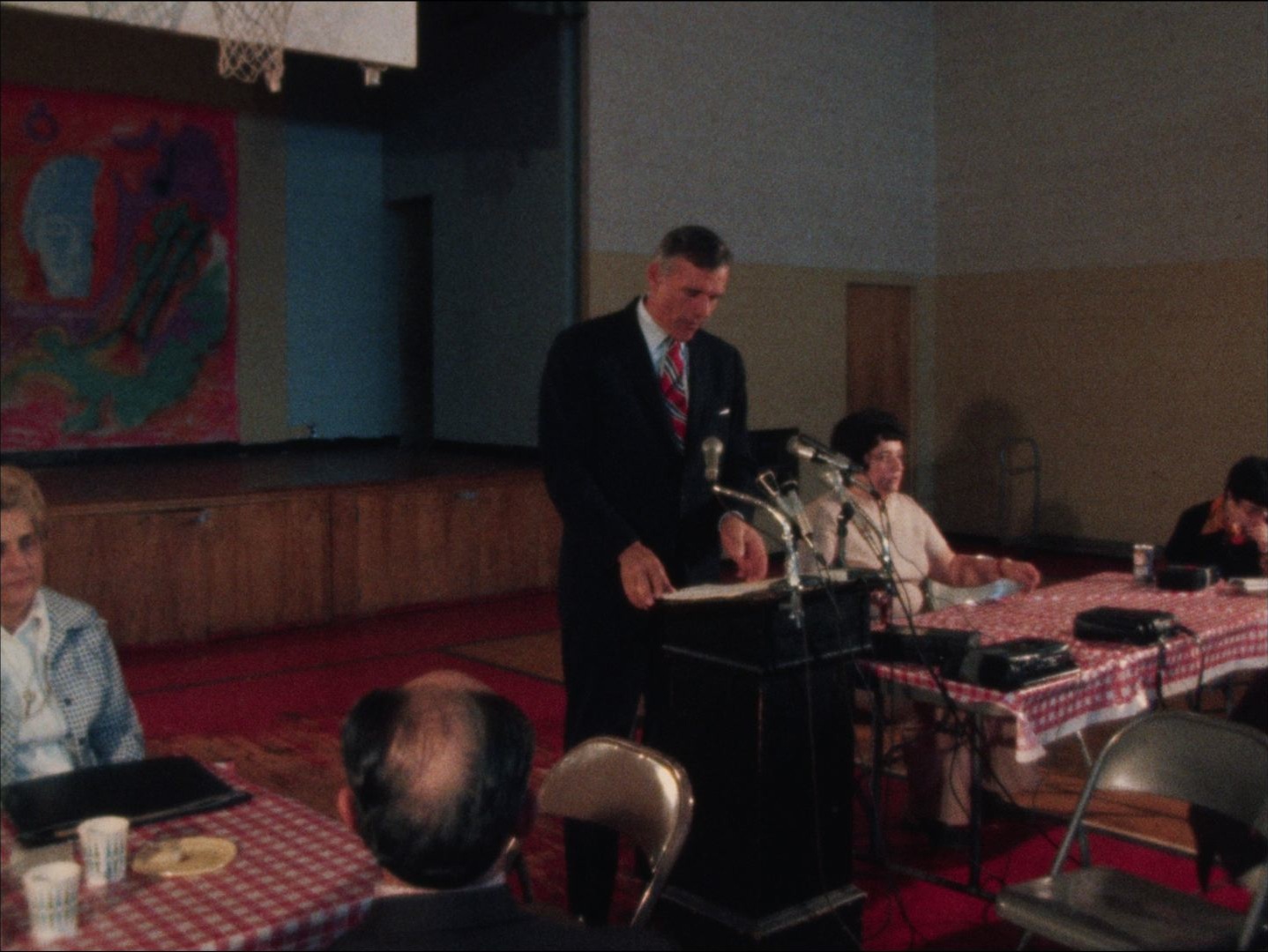 Description: Leader: P1 Sarge Utilities Speech #8054 4/29/74; Governor Francis Sargent speaks to an audience in a school gym about the high cost of utilities for the consumer and his promise to fight the cost of higher fuel.