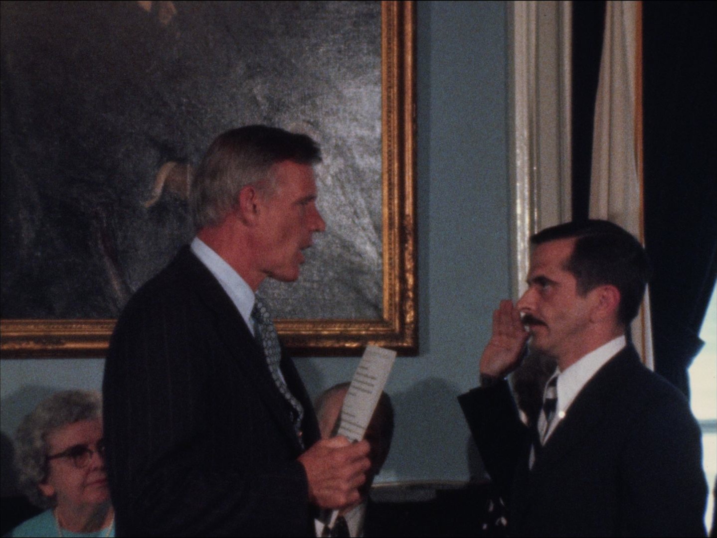 Leader: P2 Cowin Successor #8192 5/9/74; Governor Francis Sargent administers the oath of office to David Marchand, who is replacing William I. Cowin as Massachusetts Secretary of Administration and Finance. Interview with Cowin about why he resigned to run for State Attorney General. More footage of the swearing-in ceremony and the interview with Cowin.