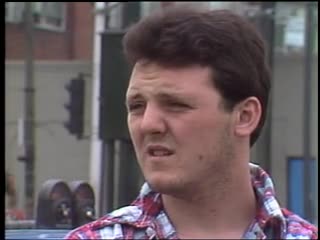 Reporter walking down the street with a young man, shots of a residential neighborhood, and some graffiti. Interview with a man who has had difficulty with teenagers in the neighborhood. Footage of a school and kids playing baseball, Cleveland circle. Interview with a police officer about racial tensions in the area. Reporter closing standup. Mix of sound and silent. Additional description from the Original WCVB Rundown for this story reads: "Over the weekend, an Iranian student at [Boston University] was stabbed in the Cleveland Circle area/this is still another folo."