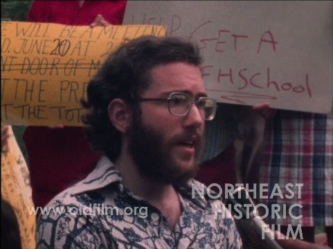 "Leader: "P1 Black Business 6/23/74 #9141"; Silent footage of a group of mostly black people standing and listening to a speaker; filling out index cards; close up shots of audience members; people sitting at tables."