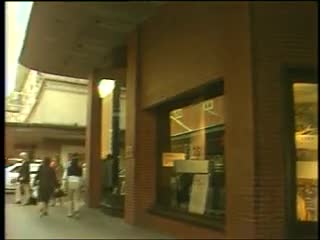 Building formerly occupied by R.H. Kennedy department store in Downtown Crossing. Plaque of Mercantile Library building, first site of MIT. Filene's and Jordan Marsh signs.