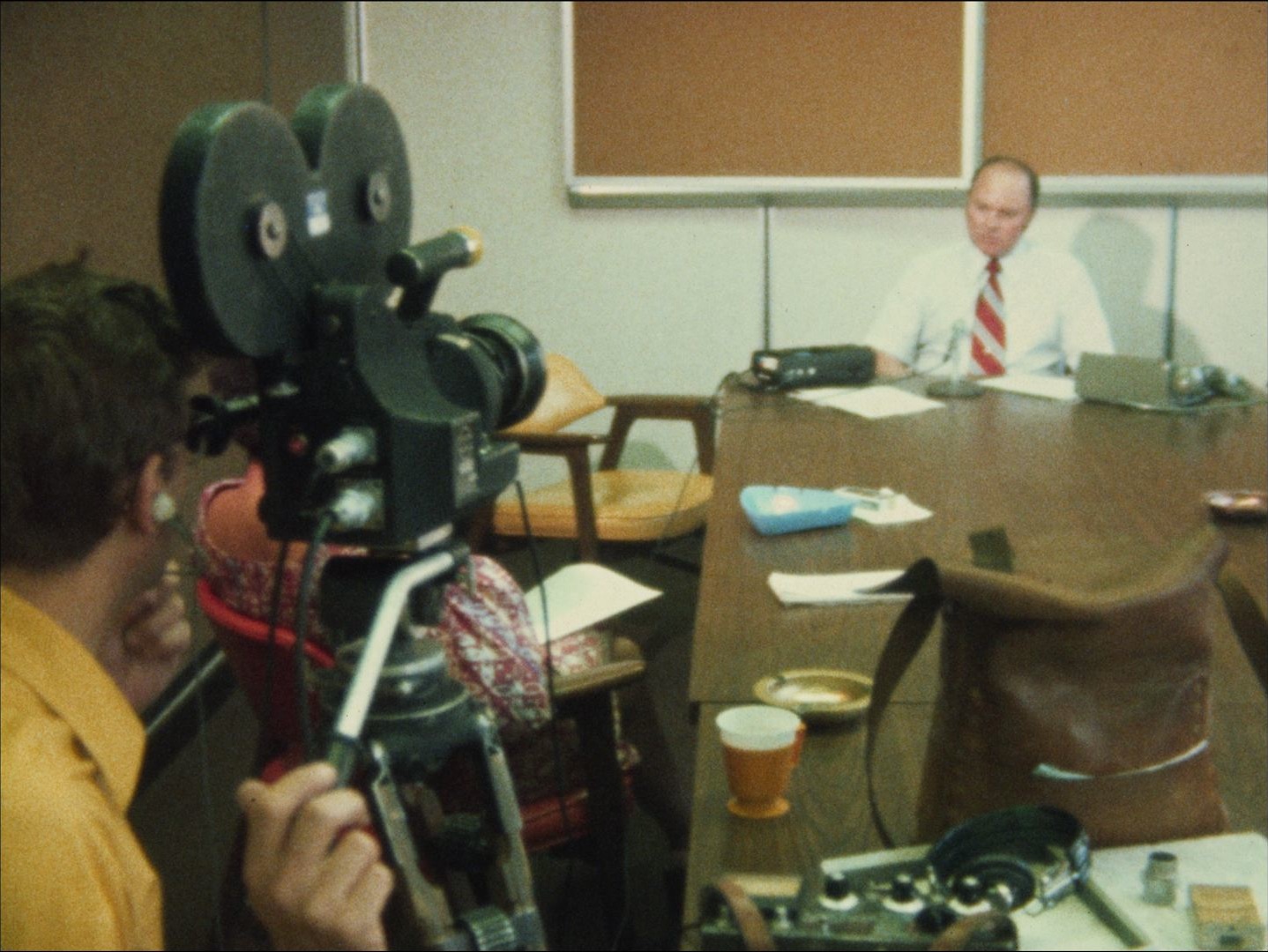 Leader: F1 Grasshopper Back #9433 7/23/74; Silent footage of two men, Martin Quinn and Dave Desjean, from Skyline Engineering Company returning a 225 year old grasshopper weathervane to the top of Fanuiel Hall after it was stolen and returned. Long shot of the men on the roof with an airplane flying by in the background. Onlooker watch on the ground, close ups of the grasshopper, and the men returning inside. Quinn and Desjean with the grasshopper on the ground before reattaching it to the roof.