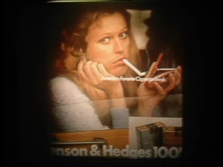 Description: CIGARETTE ADS IN PRINT FROM 1930s, 40s, 80s AND ON BILLBOARDS SUGGESTING GLAMOUR IN SMOKING.
