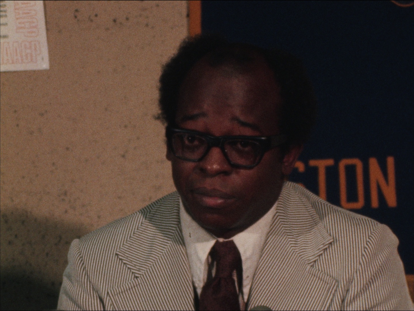 Description: "Leader: "P1 NAACP N/C [news conference] #9861 - 6 SEPT 74"; Silent b-roll of NAACP press conference with shots of the audience and the speaker, man speaks about busing and the racial imbalance law and how parents, school children, and school officials need to follow the law. More (unrelated?) silent footage of a man speaking to an audience of mostly while men. United Way, Boston Bruins, and signs behind him."