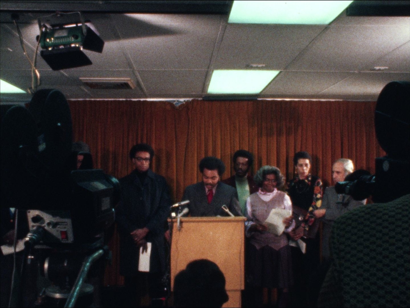 Leader: #8 P1 Bill Owens N.C. #10503 11/14/74; Senator William Owens press conference to announce a march and rally against institutionalized racism and to support busing to be held on Boston Commons. Owens speaks to the press about the Boston school committee, racism in education, institutionalized racism, and the planned rally. Silent b-roll of the press conference.