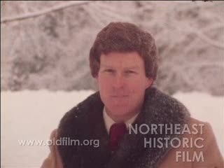 Description: "Leader: "Tax Valuation 12/25/74 #10853"; Silent footage of a street in the snow followed by more exterior footage of housing around the city. Man discusses the negative impact of the Sudbury case on small residential and new commercial buildings. Roger Goodrich reporter stand-up in heavy snow about property tax valuation. Outtakes of interview with man."