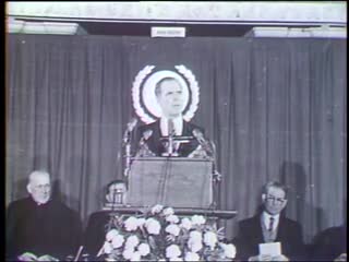 2:09:33: Visual: Members of the press are assembled for a press conference at City Hall with Kevin White (Mayor, City of Boston) and Robert DiGrazia (Police Commissioner, City of Boston). White begins reading a statement, then stops because there is a problem with sound.