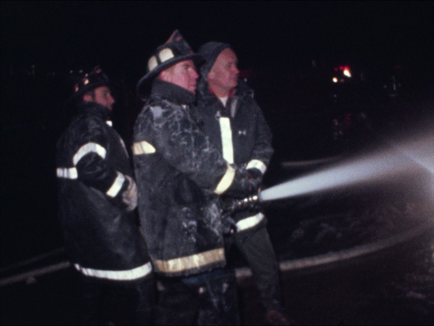 Description: Leader: P1 Hanscom Air Base fire #7344 02/16/1974; Silent footage of firemen fighting a nighttime fire at Hanscom Air Base.