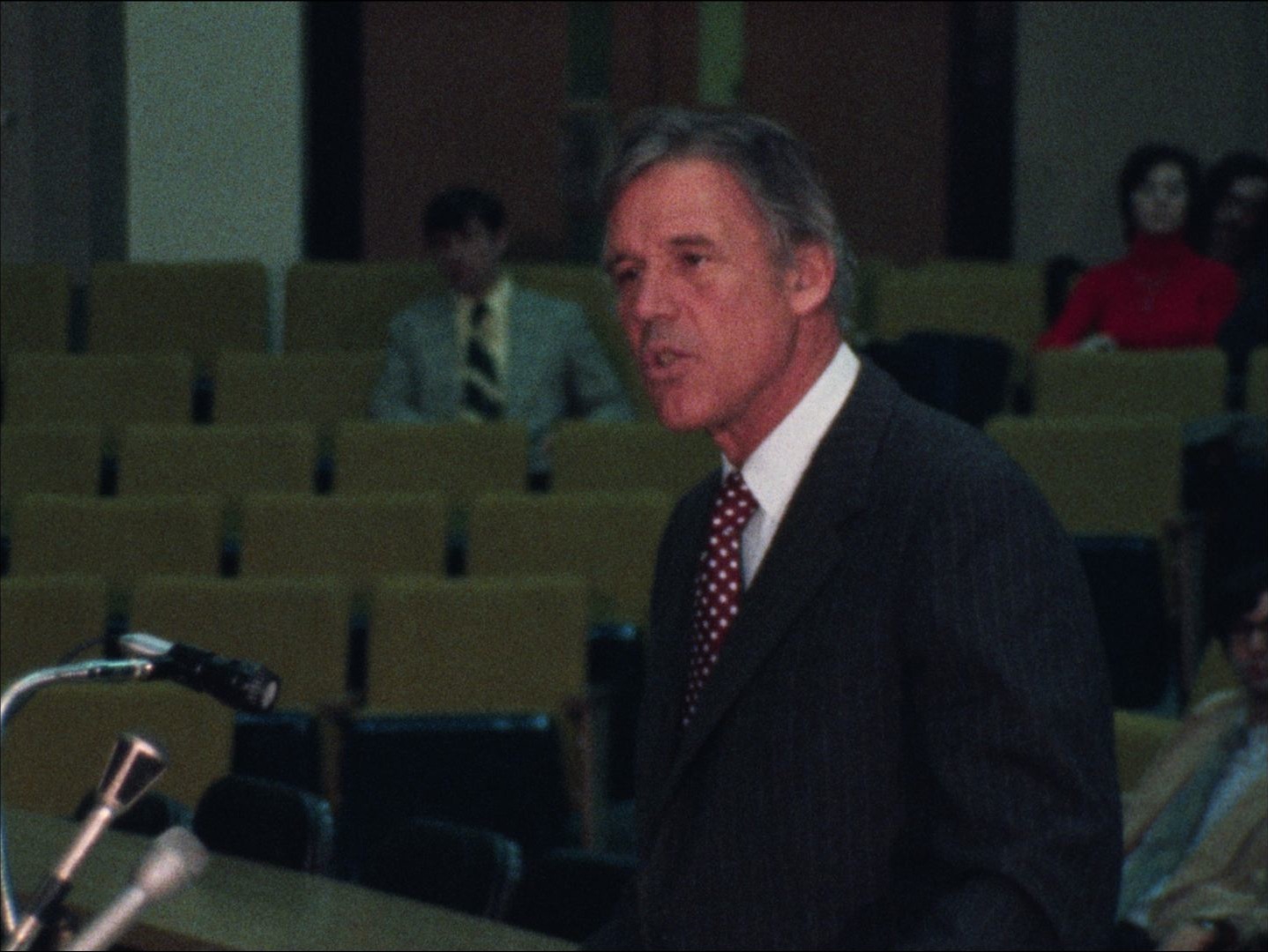 Leader: P1 Chamber of Commerce #6757 - 11 Dec 73; Mix of silent and sound footage of the Greater Boston Chamber of Commerce annual year-end outlook luncheon at Copely Plaza. Arch Macdonald reporter standup. Excerpts from speeches from a couple local businessmen possible recession and the effects of the energy crisis. Speakers include C. Vincent Vappi, William H. Gassett, John Ryan, William C. Mercer, and Raymond Foster.
