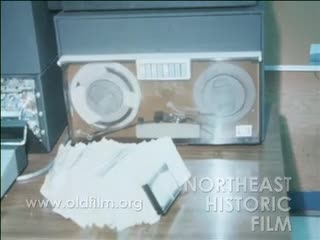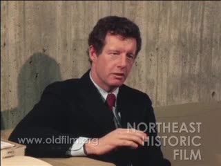 Description: Silent b-roll footage of Mike Taibbi interview with a man from the John Hancock Company (believe it to be Vice President Albert E. Prouty). Sound footage of the interview about the damage to the Trinity church caused by construction of the John Hancock Tower. Followed by outtakes which include more silent footage of Prouty's office and more of the interview. Mix of sound and silent.