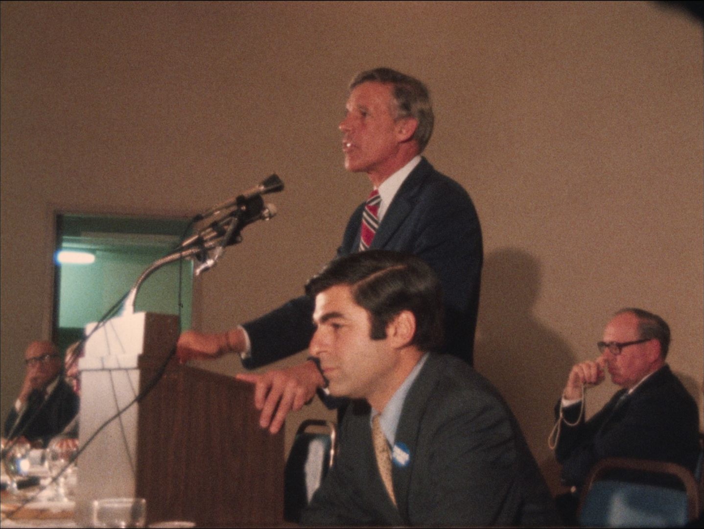 Description: Leader: P2 Debate #10231 10/16/74; Massachusetts Gubernatorial candidates Micheal Dukakis and Francis Sargent speak to a crowd.