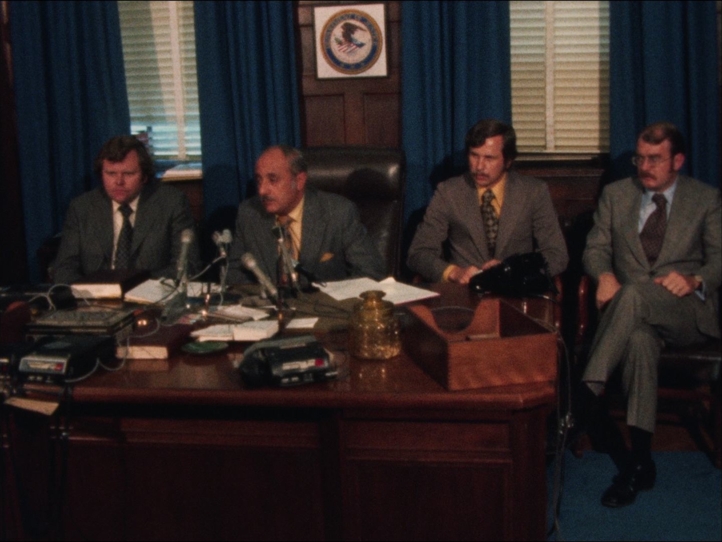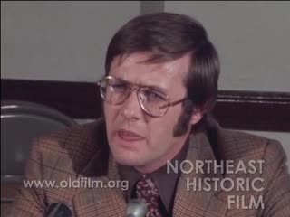 Description: Leader: P1 U.S. Attornies #10189 10/11/74; Press conference with five attorneys from the US Justice Department Civil Rights Division who were sent to Boston by Attorney General William B. Saxbe to help prosecute Federal crimes arising from violence over school busing. Attorney John Conroy answers questions from the press. William C Gardner, John Scott, Dennis Dimsey, and David Rinzel also in attendance. Film speeds up during one section. Possibly unrelated silent footage of a Boston police car stopping and fire trucks on the street.