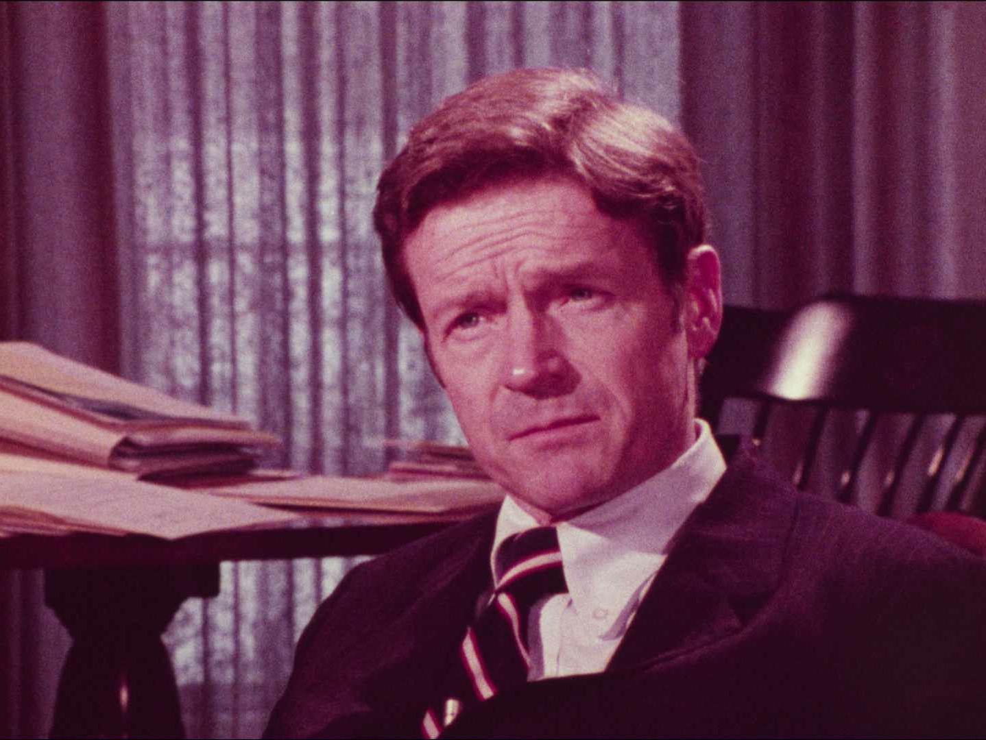 Description: "Leader: P1 Bartley on Sargent #8958 6 June 74"; Silent footage of David M. Bartley at a podium. Bill Harrington reporter standup. Bartley and Judge John Fox speak to the press about new gun control law (Bartley-Fox Amendment)."