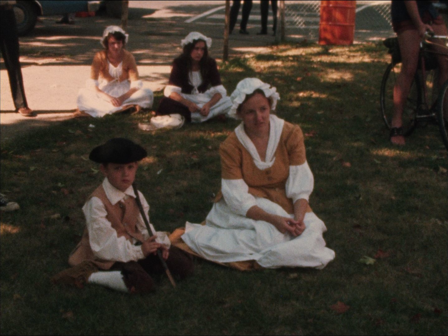 Leader: P1 Bicentenial Som. #9815 9/1/74; Silent footage of men in colonial costume in Sommerville marching down the street and carrying barrels into a tower. Levi Fierce reporter standup. A man in colonial dress speaks to an audience about historical events leading to the Revolutionary War and the British perspective of the war. Silent b-roll of the audience, men playing the drums and fife, and men in costume marching. Reporter outtakes.
