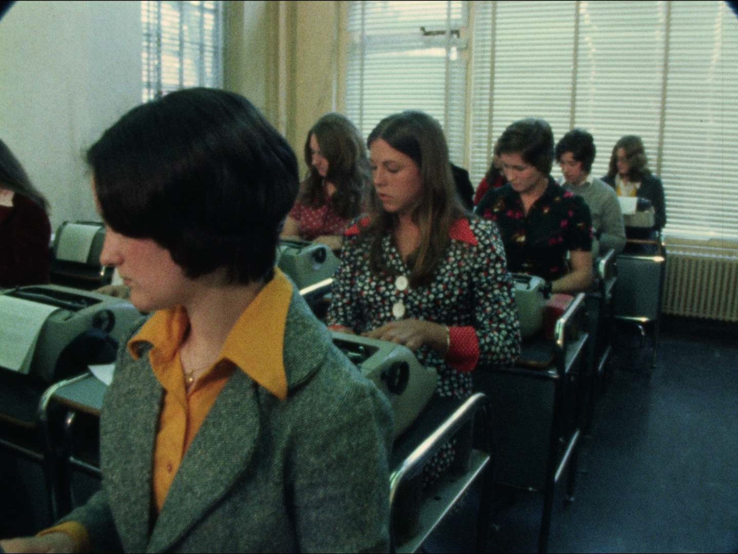Description: "Leader: "Secretaries, #7830 04/08/1974"; Camera dollies down a women’s typing pool while music plays. B-roll of a meeting. Woman in an office working. Women at a Nine to Five meeting singing a song. Interview with a woman about misogynist and lack of respect for women in the workplace. Interview with a man about the 9 to 5 movement in Boston. Interview with a woman about women in the Boston job market. B-roll of women typing and working. More of the interview with the woman (Mrs. Giddens?). Camera dollys down a women’s typing pool while music plays. Interview outtakes with a woman from the 9 to 5 organization. Interview outtake with the man from before, against the 9 to 5 [Nine to Five] movement in Boston. Note: Special on Secretaries. Story number matches story number on 2394.01537 so footage from the National Secretaries Day Rally may have been used in the special. Updated title to reflect the footage."