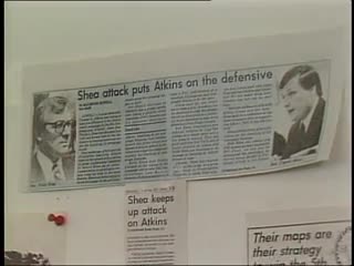 PHIL SHEA CAMPAIGN HQ, VOLUNTEERS WORKING, INTERVIEW, POSTERS, CLIPPINGS