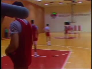 Description: BU basketball coach Mike Jarvis opposes NCAA Proposition 42 requiring college athletes to achieve certain grade average or SAT scores for scholarship eligibility.John Thompson of Georgetown. BU basket- ball practice.