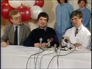 Description: PC at Brigham and Women's Hospital with heart transplant patient Matthew Shelales one year after surgery. Dr. Gilbert Mudge. reel 1 of 2.
