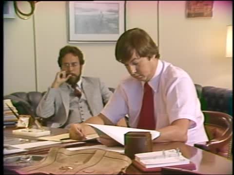 ATTORNEY GENERAL FRANK BELLOTTI IN HIS OFFICE WITH CIGAR, ON PHONE, ETC.