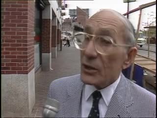 Frederick Langone press conference on Supreme Court case about the authority of a federal judge. Albert "Dapper" O'Neil sits next to Langone. Sound.